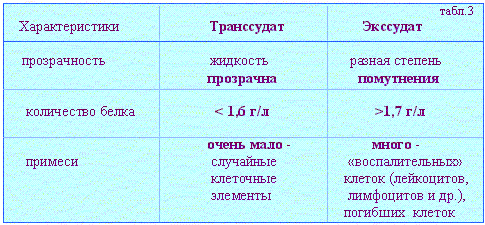 экссудата. Для практика важно уметь отличать экссудаты от транссудата (табл.3).
