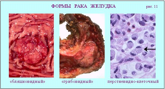 рака желудка: полиповидный; инфильтративная раковая язва; не