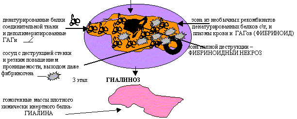 3 - гиалиноз – с возникновением стекловидных участков –вещества ГИАЛИНА.