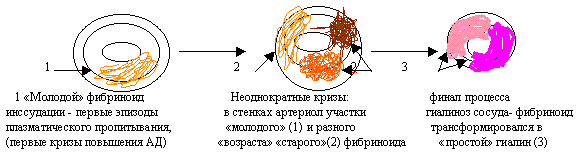 приводит к преврашению сосудов в узкие, плотные гиалинизированные трубочки –
